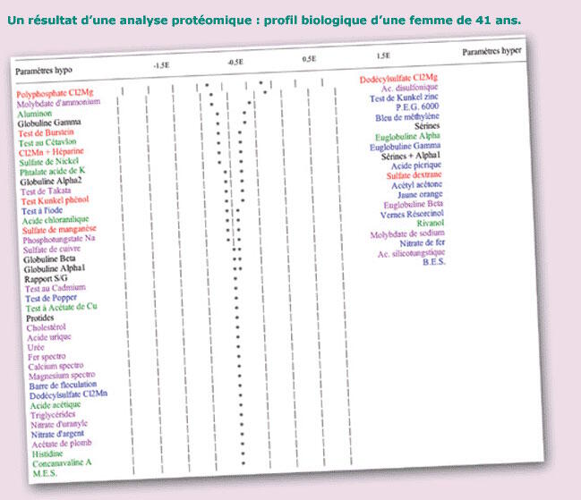 Cette analyse montre au médecin qu'il faut avoir une vision systémique du vivant. Nous sommes trop dans la lésion de l'organe en attendant les symptômes. Mais avant la lésion de l'organe, il y a celle des tissus, de la cellule, de la molécule. Là, on atteint les cinétiques moléculaires. Les protéines sont comme des moteurs dynamiques dont les dysfonctions révèlent une maladie. Elles indiquent ce que le mal dit. Toute pathologie a pour origine une dysprotéinomie. C'est-à-dire une modification qualitative et/ou quantitative d'une protéine. La protéine, c'est la véritable ouvrière moléculaire de la cellule. Elle est beaucoup plus proche de la réalité physiologique que ne l'est l'ADN. C'est elle qui fait le job.