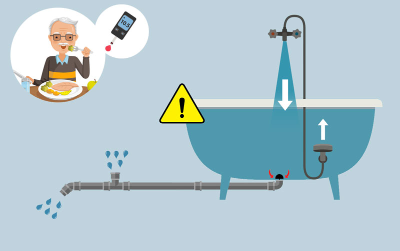 Ce problème de baignoire toujours trop remplie pose des problèmes à court terme pour les personnes diabétiques (le risque de débordement peut se traduire par des malaises, des épisodes d’hyperglycémie) mais aussi à long terme, car la baignoire n’a pas été construite pour supporter un poids d’eau si élevé (les nerfs et les vaisseaux sanguins qui se dégradent peu à peu sont à l’origine de très nombreuses maladies).