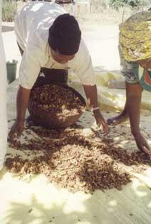 On considère que le thé est arrivé à maturité lorsque les feuilles et les tiges de la plante sont jaunes. Les branches sont alors coupées, les feuilles mises à fermenter après avoir été saupoudrées avec un peu d'eau et placées dans un sac en plastique. On les laisse ainsi jusqu'à ce qu'elles aient pris une couleur brune. Elles sont ensuite mises à sécher. Lorsqu'elles sont sèches, le thé est prêt pour la consommation. |
