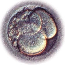 Après fécondation, la cellule issue de la fusion du gamète mâle (spermatozoïde) et femelle (ovocyte) se divise en deux cellules (stade 2), puis en quatre cellules (stade 4). |