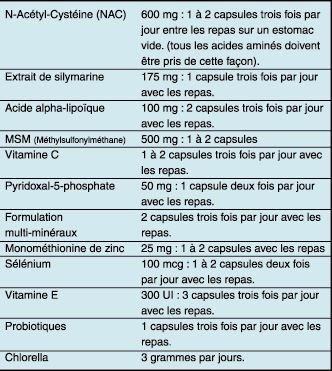 | Régime de doses de suppléments nutritionnels recommandé pour la détoxification du mercure | |